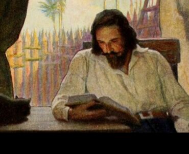 Above is an illustration from one of the many editions of Daniel Defoe’s The Life and Strange Surprising Adventures of Robinson Crusoe, of York, Mariner. The picture visualizes the following text as Crusoe...
