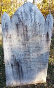 The Neshanic Reformed Church was established August 25, 1752 by eleven individuals dismissed for the purpose from a local congregation. Neshanic later separated from a group of local churches with which they had been sharing a minister in order to unite with the Harlingen Church. When Neshanic-Harlingen’s pastor, Johannes Martinus van Harlingen, died in 1795, William R. Smith succeeded him. One of the factors the congregations found attractive about Smith was his ability to preach and teach the younger church members in English. The Dutch were concerned that their succeeding generations gain facility with the language of their recently formed new nation and its English constitution. He continued with Neshanic-Harlingen until his death February 23, 1820. Rachel survived until her passing January 8, 1849. His grave inscription reads, “Sacred to the memory of Rev. William Smith for 25 years as one of the ministers of the United Congregations of Shannick [Neshanic] and Harlingen.” The stone church building in which Rev. Smith led worship was completed in 1762 and is still in use.