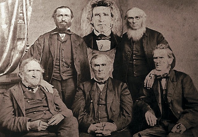 Notes—D. X. (David Xavier) Junkin wrote a lengthy biography of his brother titled, The Reverend George Junkin, D.D., LL.D., A Historical Biography, Philadelphia: J. B Lippincott & Company, 1871; this book provided information for this biography and the signed portrait is the frontispiece; the quote in the second paragraph of this biography is from page 30; and the one about whiskey in his congregation is on page 88. The header picture is dated 1865 and was provided courtesy of the PCA Historical Center, Wayne Sparkman, director. It shows six Junkin brothers at a reunion including an inserted portrait for Joseph who was either deceased or unable to attend–back row left to right, Matthew, Joseph, and David; front row left to right, Benjamin, George, and William F. The spelling of George’s mother’s name, Eleanor, is based on the spelling in his biography; some sources spell it Elinor. The Sam Houston Historic Schoolhouse in Maryville, Tennessee, is a log structure with horizontal windows like those in the school Junkin attended. Another Presbyterian associated with Miami University and written about on Presbyterians of the Past is William H. McGuffey, America’s Educator. When Junkin’s daughter Eleanor died, her husband Deacon T. J. Jackson considered marrying her sister, Margaret, but decided against it due to the prohibition against such marriages in the Westminster Confession of Faith, 24:4. As a Presbyterian Church officer he had vowed to uphold and follow the confession. For an examination of this and other near-kin marriage issues in Presbyterian history see the author of this site’s, The History of a Confessional Sentence, 2002, which studies the relevant sentence in the Westminster Confession, chapter 24, “Of Marriage and Divorce,” and is provided free by the author through Log College Press in PDF.